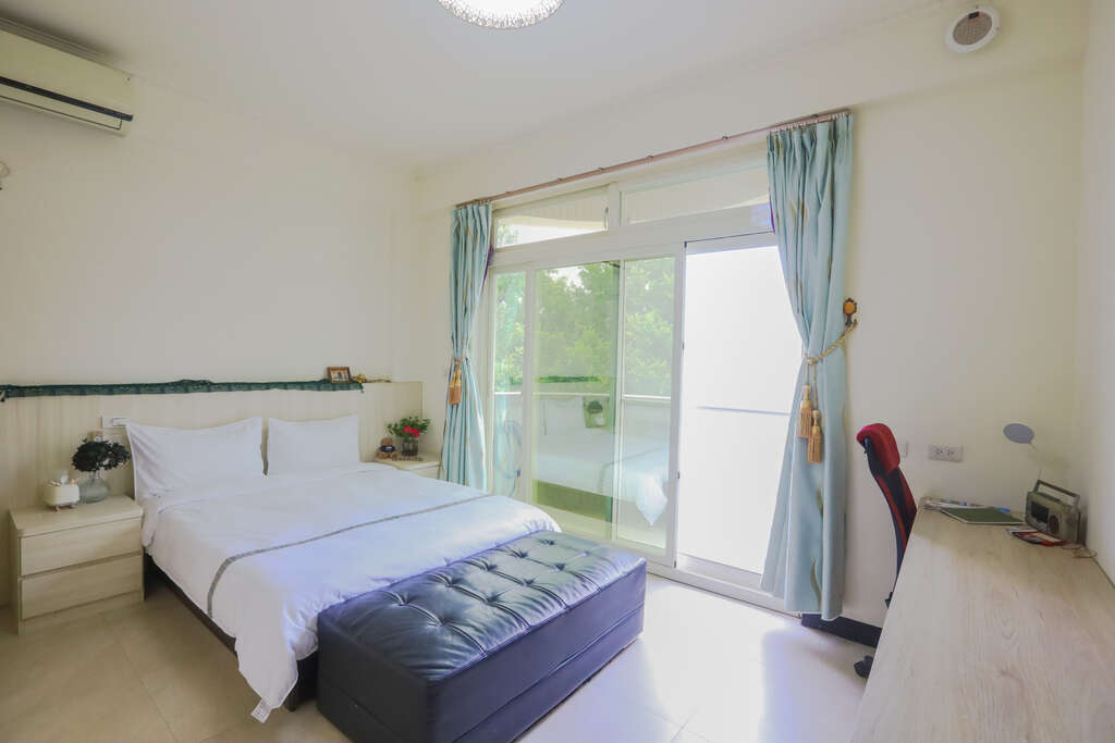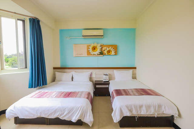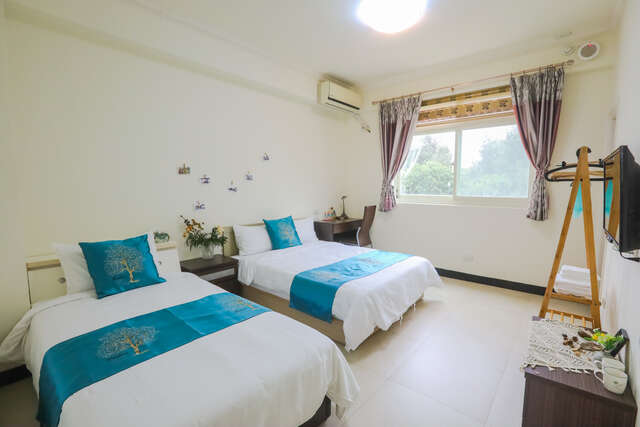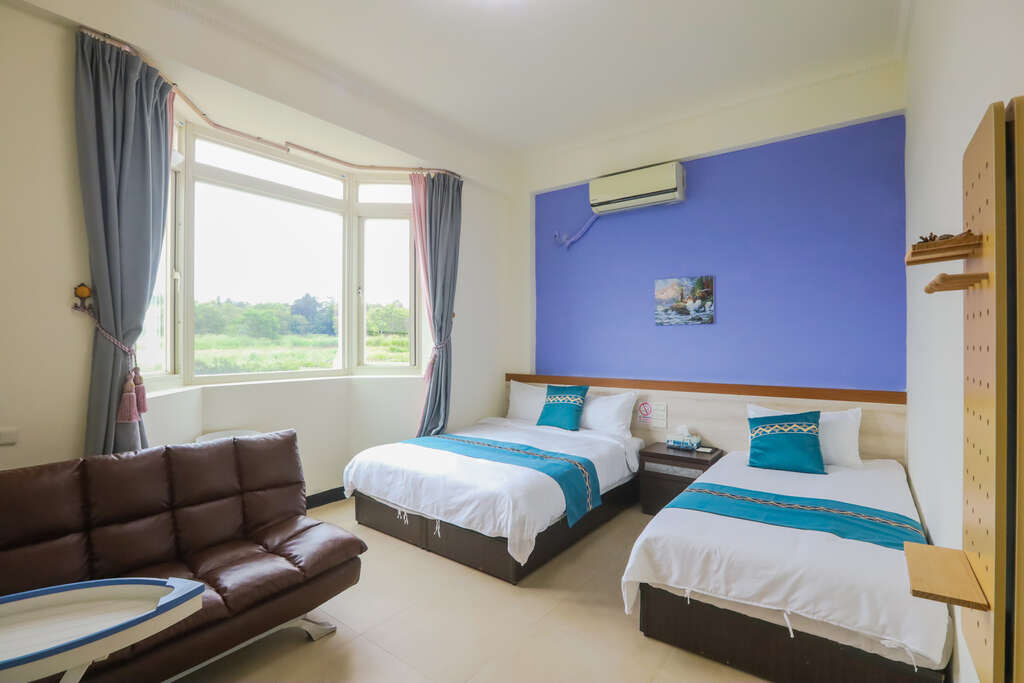 三人房|套房内空间宽敞且采光明亮,每间皆配有大片对外窗,只要拉开窗帘就可以欣赏到日出徐徐升起,让清晨第一道阳光伴随田野景致唤醒身心,房内随处可见老板娘对摆设的小巧思。