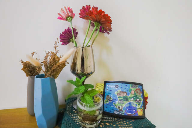 不只如此,老板娘也规划了DIY盆栽活动,像是种植迷迭香,让旅人可以动手种下属於自己的小小绿意,旅程结束後还能将它带回家,将金门的气息延续进生活中。