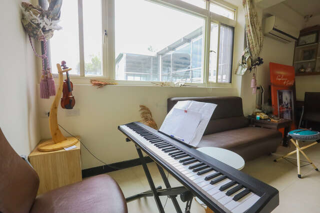 老板娘特别重视「生活的仪式感」,她总希望每位旅人来访时,都能感受到些微不同的惊喜。因此民宿不定期调整空间摆设,还设计了专属的开放式艺术空间,摆放电子琴与鼓组,欢迎旅人随兴弹奏或敲击,让音符成为旅途中最自由的语言。