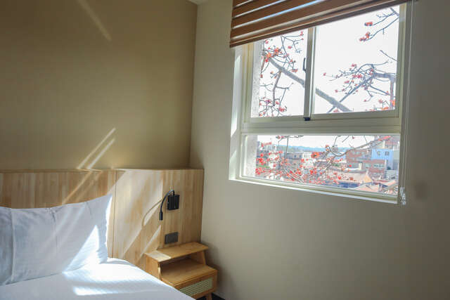 浯岛轻旅位於金门总兵署後方,邻近自然与历史街区,提供双人一大与双人两小房型,配有免费Wi-Fi、数位电视、饮水机与冰箱。旅宿由老屋翻修而成,保有简约与自然风格,主打不接团体、不浮夸装潢,适合喜爱慢旅与赏鸟摄影的旅人。每年木棉花季,窗外景色如画,是体验金门人文与自然的静谧之所。