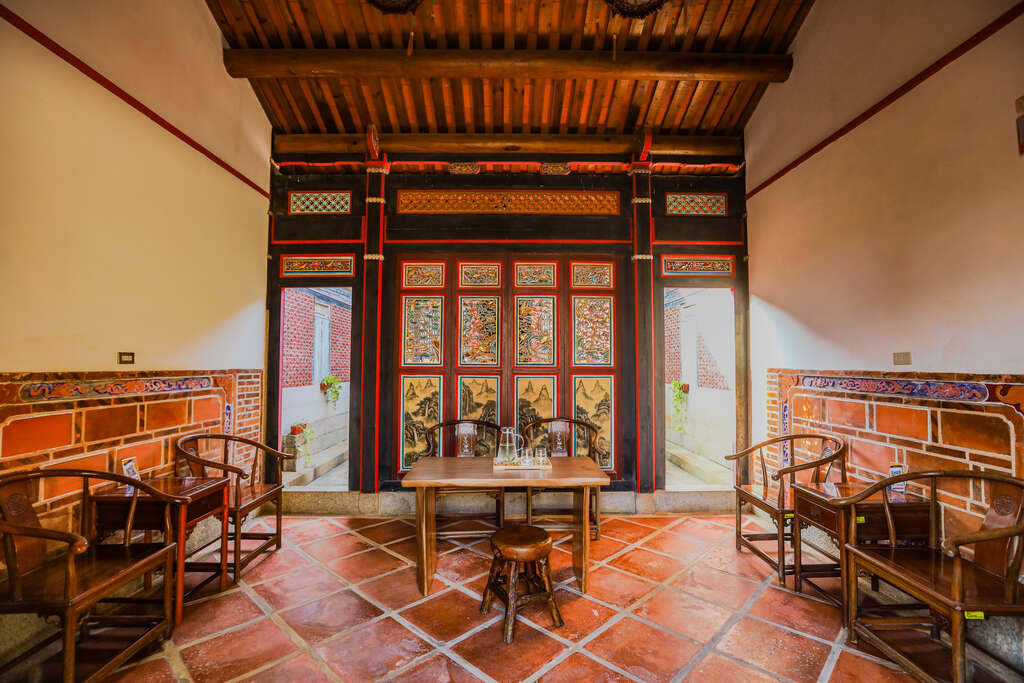 四季行旅位於水頭聚落之中,由閩式古厝修復改建而成,是典型的雙落大厝,民宿保留了原有的磚牆、燕尾脊與木構屋架,牆上的陶偶藝術、手繪壁畫與古典木質傢俱,打造出一處溫柔沉靜又不失品味的旅宿空間。