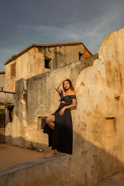 拍攝小技巧:坐在頹屋正前方,能拍出後方牆面層次感,穿上應景服飾更能拍出濃厚異國氛圍唷~