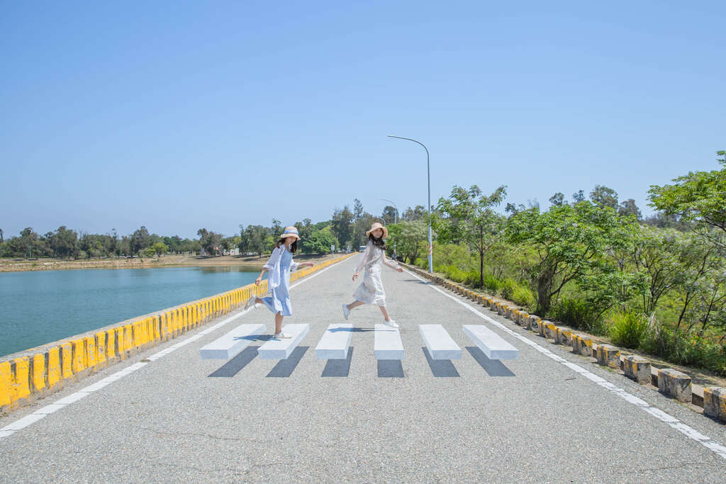 像石板一般飄浮在空中的3D斑馬線,利用彩繪技術造成視覺落差,除了特別吸睛,這樣的設計有提醒行車駕駛穿越馬路時減速慢行的作用。抓準角度站在3D斑馬線就可拍出在空中漫步的感覺喔!!