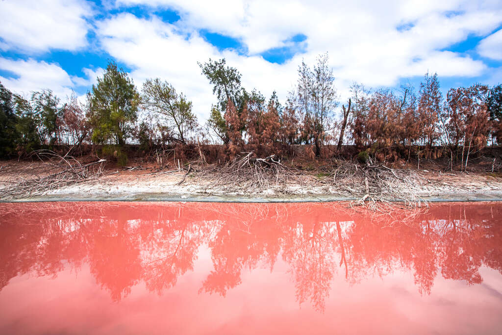 藻類增生,導致慈湖的池塘改變了色彩,五顏六色的池塘,有如上帝的調色盤,其中一池更成為夢幻粉紅色,吸引許多網美前來拍美照~