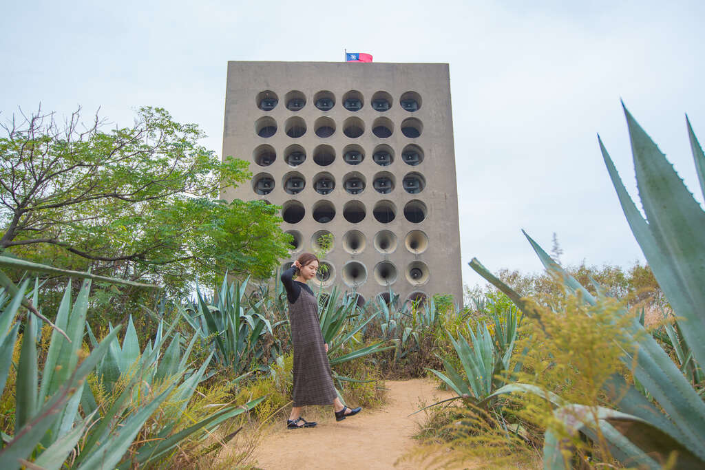 拍攝小技巧:在特殊如蜂巢的造型牆面前,不論是站在一旁,或是站在播音牆下仰拍,都是很熱門拍照方式!