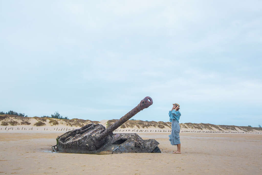 拍攝小技巧:站或坐在戰車旁,與戰車一起感受海風吹拂,就能拍出相當有感覺的美照啦