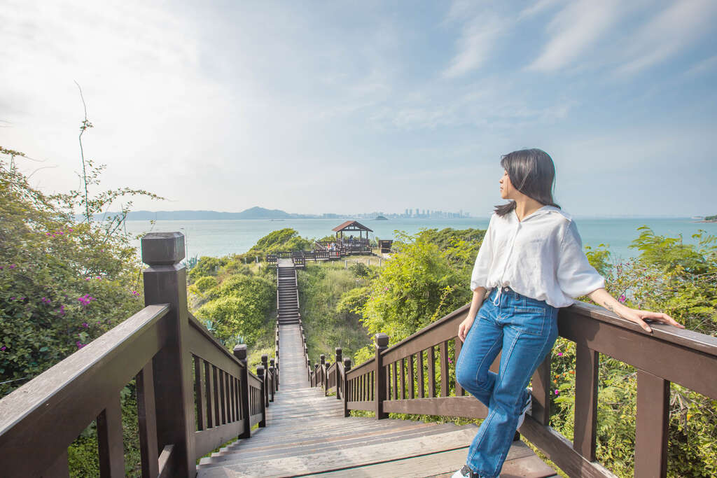 拍攝小技巧:在此能將特色軌條砦、潔白沙灘、廈門市景及浪漫裝置藝術等景色一同入鏡。