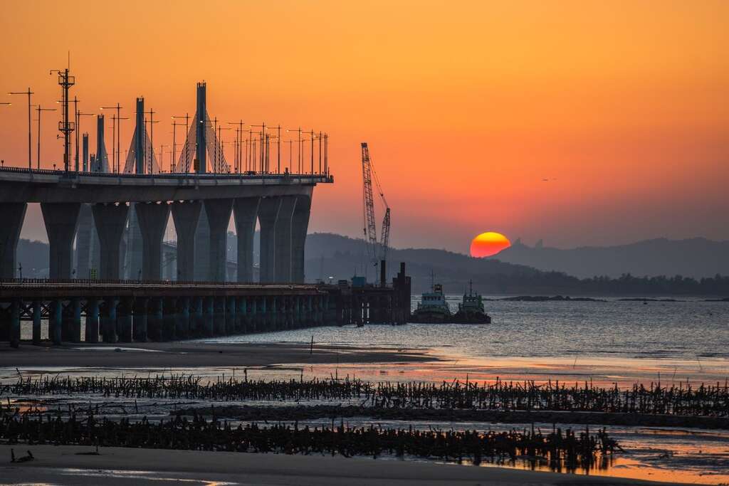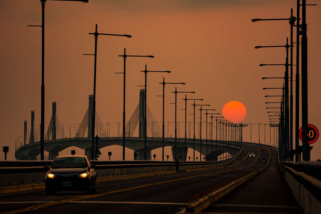 金門大橋在金門大橋大金門慈湖端旁,有木椅提供旅人放空賞橋,傍晚可在此賞落日,喜愛散步的朋友,也可以選擇步行上橋,在高處感受被藍海包圍的療癒感,也能離夕陽美景再更接近一些,每年約3月中及9月底,還能在橋上捕捉到大橋懸日,是攝影師爭相搶拍的難得美景!
