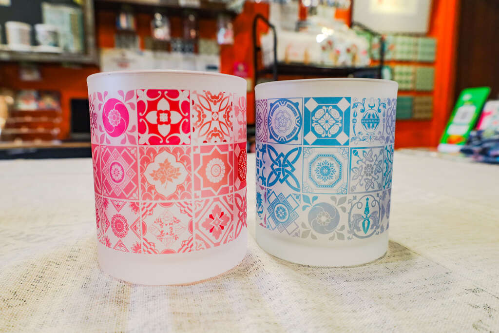 金酒高粱杯|金門酒廠高粱杯與金門花磚的文化碰撞,不同的花色讓杯中的高粱喝起來感覺都更繽紛了。