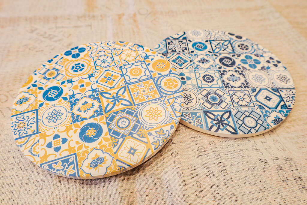 杯墊 / 鍋墊系列|除了最常見的杯墊,還推出了鍋墊,以不同花色大小排版錯落,看起來活潑充滿設計感。