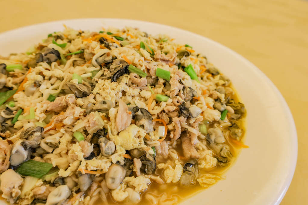 戰地炒泡麵|融合金門戰地文化與台味經典,濃郁醬香、料多實在,選用來自上林海域的當地海蚵,鮮甜彈牙、充滿海味,是大人小孩都愛的風味小吃。