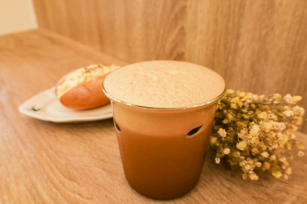 咖啡豆挑選自小型烘豆商,提供淺焙與深焙兩種風味選擇。流沙美式是店內的特色。通過對咖啡進行打發,從而營造出如細沙般層層滑落的流沙視覺效果,一上桌便能看見「流沙」緩緩沉降,香氣隨之散開。視覺與味覺兼具,是旅人拍照與慢飲的雙重享受。