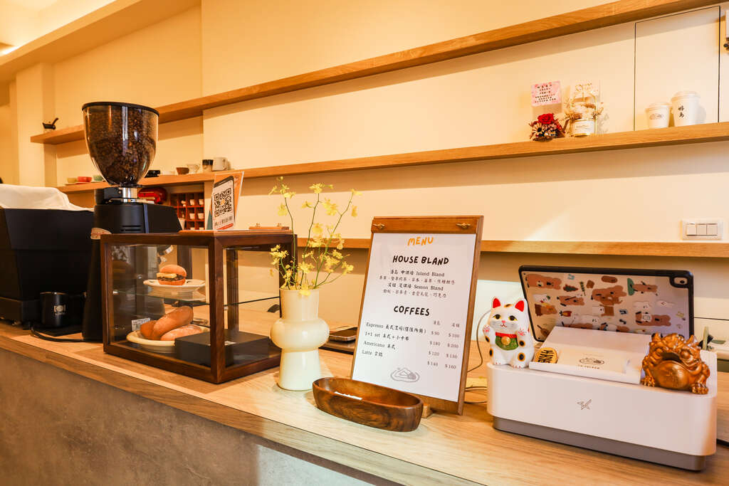 店內座位不多,卻處處充滿細節,從精簡的菜單、挑選過的食材,到杯盤與擺設的質感,無不透露出「簡單卻講究」的哲學。L 型的空間設計將小空間運用得恰到好處,店主親手挑選的杯具與香氛,展現她對生活節奏的掌握與喜愛。