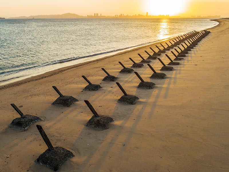 金寧郷では「古寧頭戦役」を思い浮かべずにはいられません。今では戦役記念を訪ねられるルートが設けられており、戦争当時の雰囲気を感じることができます。「古寧頭戦役」で最後の決戦の地となった北山断崖では、当時繰り広げられた双方の攻防戦が偲ばれます。テレサ・テンが中国に向かって呼びかけた心理戦の拠点「北山放送壁」、「北山古洋館」の壁にはたくさんの弾孔が残っています。「古寧頭戦役」についてもっと知りたいと思ったら、作戦文書、武器等の史料を展示する「古寧頭戦史館」へ向かいましょう。ここでは金門を守った兵士たちの国を思う心に胸を打たれるでしょう。