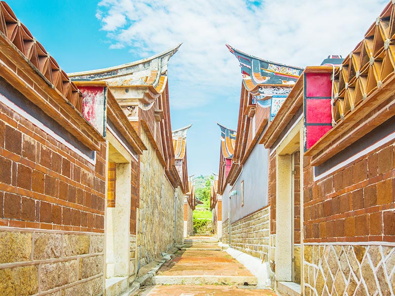 현지인은 산허우 18간 대궐로 부르는, 18개동의 민남식 고택으로 구성된 촌락입니다. 청나라 광서2년에 일본에 여행을 다녀온 화교인 왕씨 부자가 자신의 동포들에게 지어준 건축물들로, 고택은 오늘날까지도 옛모습을 잘 보존하고 있습니다. 진먼 전통민가의 대표적인 건축물이기도 합니다.