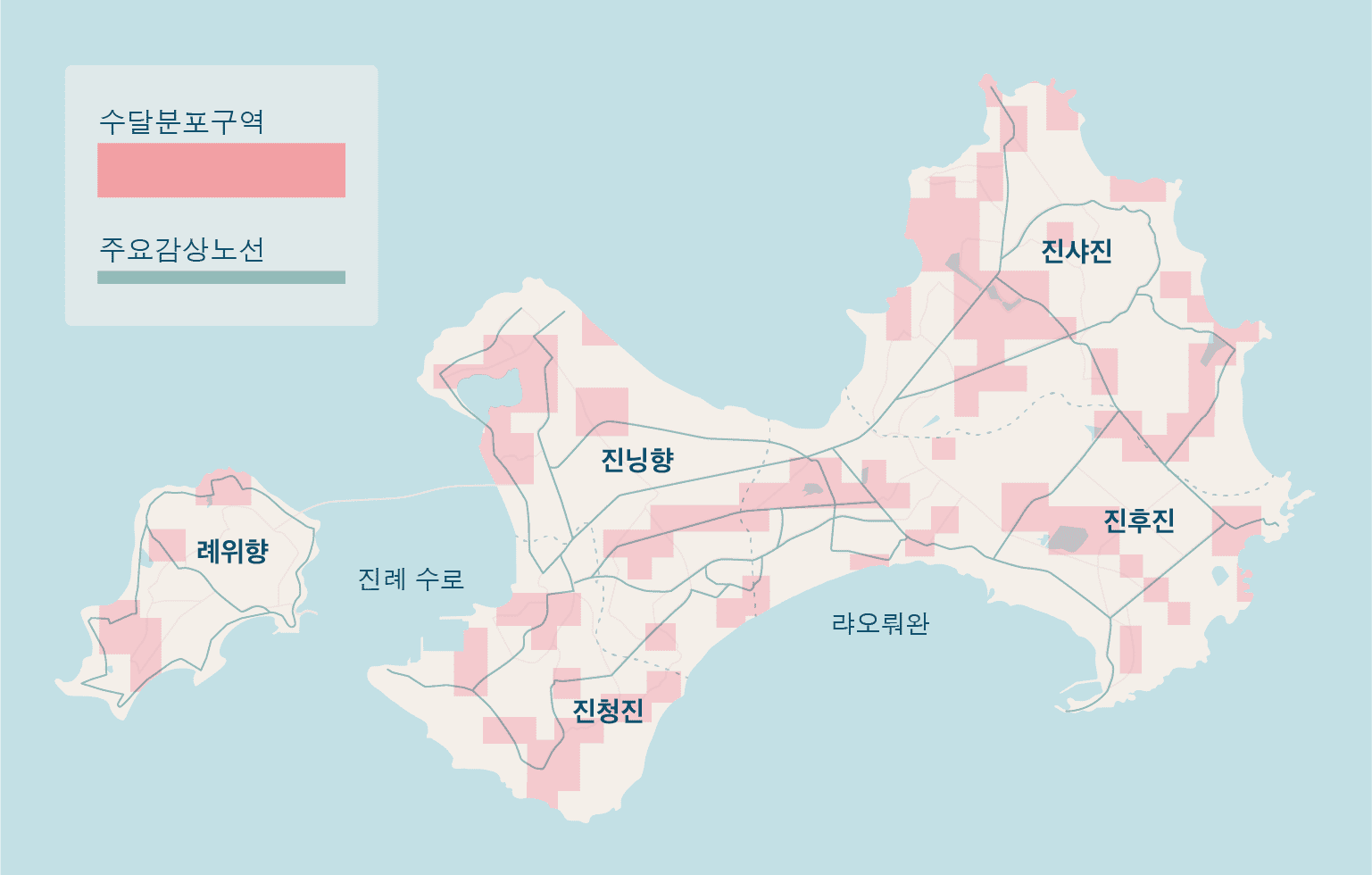 진먼은 남쪽에서 북쪽을 향해 가는 철새들이 반드시 지나가야 하는 지역으로, 포성이 자취를 감춘 이후, 한적한 논밭 위에서 무르익은 봄철의 밀과 여름가을철의 수수, 그리고 해변의 조간대에 서식하는 어류와 갑각류는 각종 철새와 텃새들에게 충분한 먹이가 되어주기에, 각종 조류 서식의 천국입니다. 꿩, 오디새, 여름의 정령 벌잡이새 등의 종적을 볼 수 있을 뿐 아니라, 보호종 동물인 수달의 종적도 발견할 수 있는 자연생태 감상의 성지입니다.