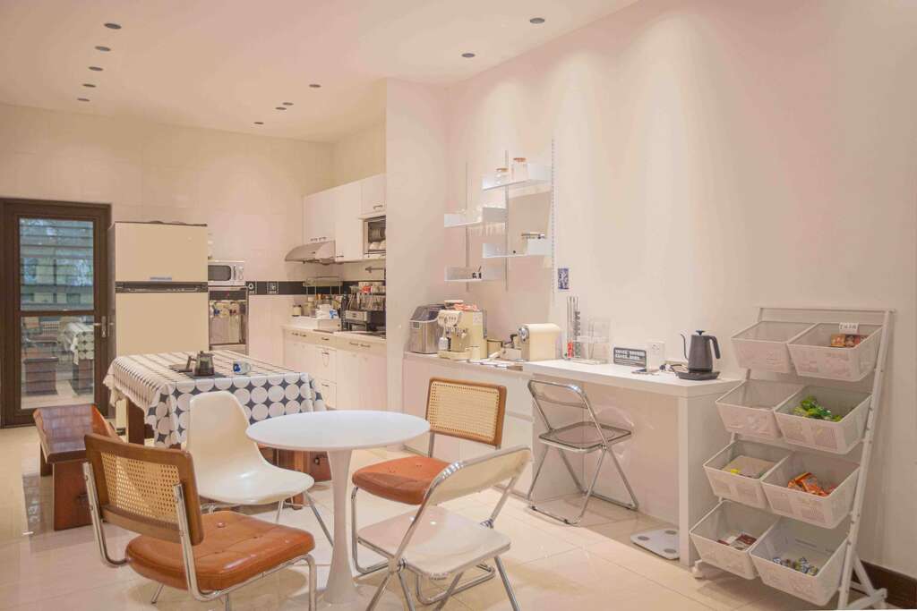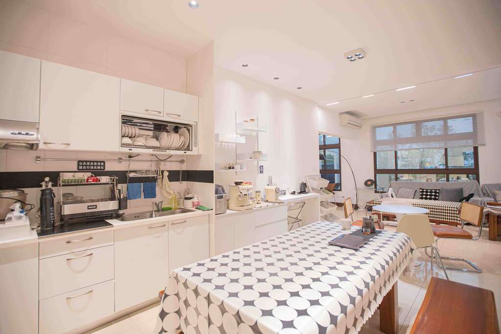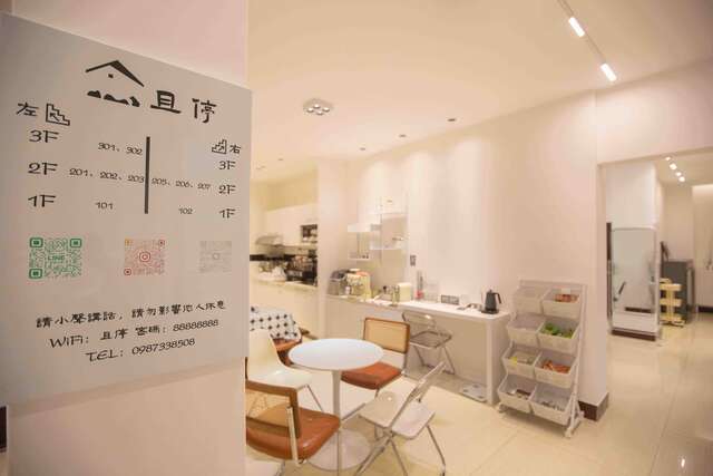 且停民宿房间位置分为两侧,明确标示就在交谊厅旁,空间虽大但不怕迷路。公共空间有提供咖啡机、简单小厨房、冰箱、快煮壶、茶包等,贴心的细节崭露无遗。