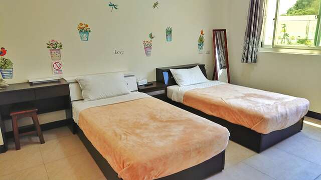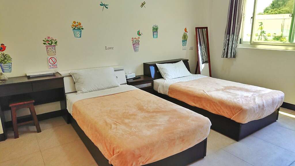 三人房|套房内空间宽敞且采光明亮,每间皆配有大片对外窗,只要拉开窗帘就可以欣赏到日出徐徐升起,让清晨第一道阳光伴随田野景致唤醒身心,房内随处可见老板娘对摆设的小巧思。