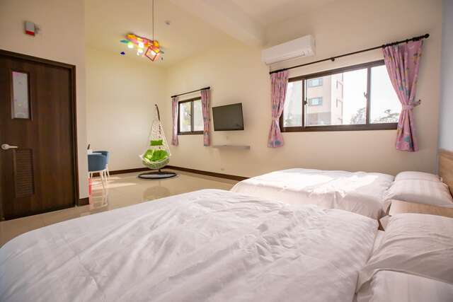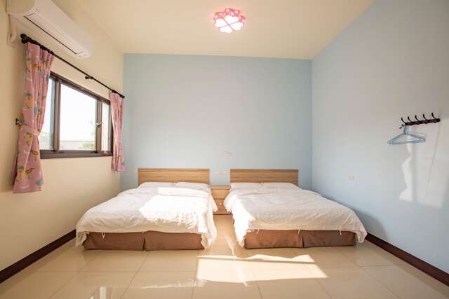 民宿提供双人、三人及四人房型,加上庭院广阔的空间,相当适合家族旅游。