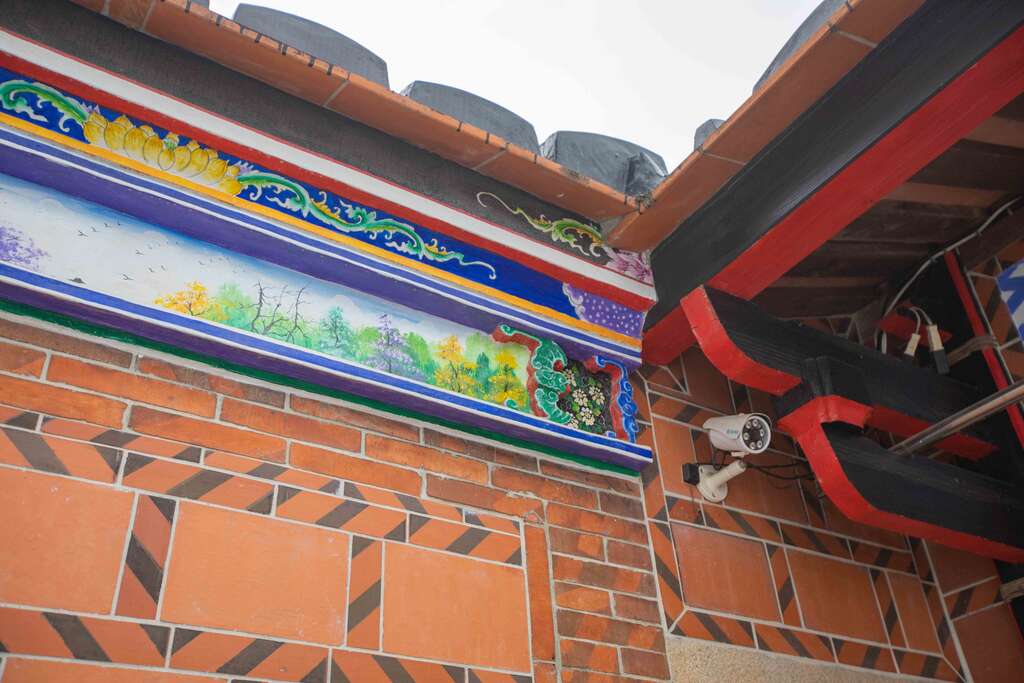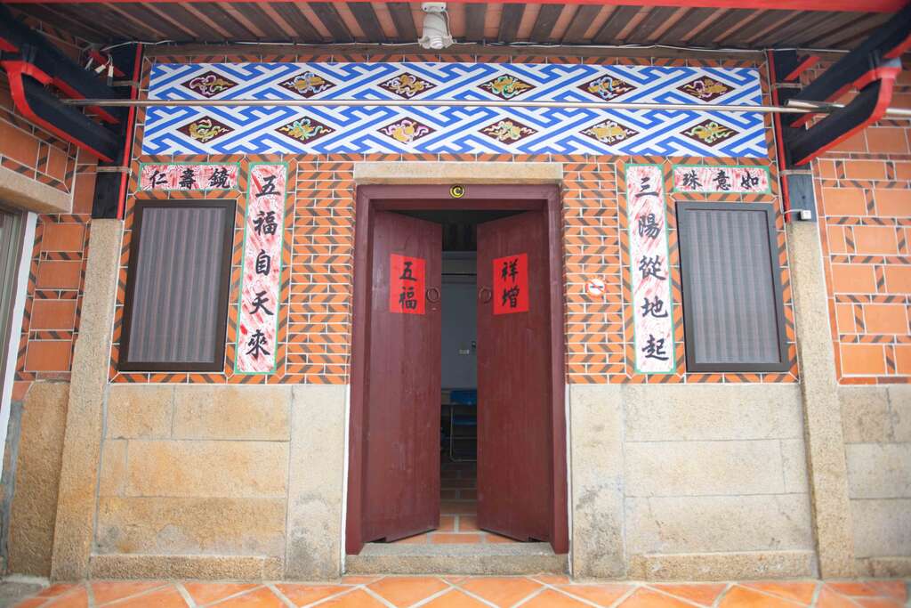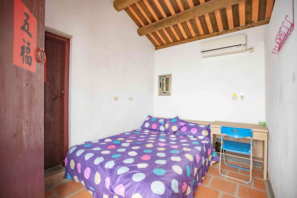 与一般古厝民宿不同,老板开放古厝里「护龙」的空间作为房间,墙面上的图腾透过整修後,恢复到原本的精美样貌。