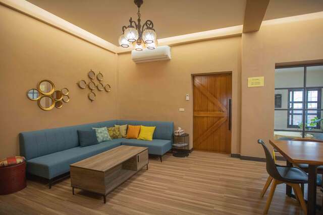 客厅物品不多但也设备齐全,光是这加长版的沙发就让旅客能好好放松,即使是多人数的团客,也不怕空间太小,一起坐在充满品味的空间里,分享旅途趣事话家常。