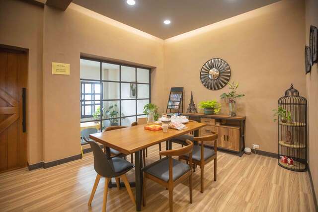 往内走是迎宾餐厅,也是旅客到来後与主人见面的第一个空间,各角落打理的舒适宜人,独具风格的布置处处都值得停留目光,餐桌上不时会有迎宾小点心,是主人想向旅人分享的心意。
