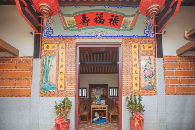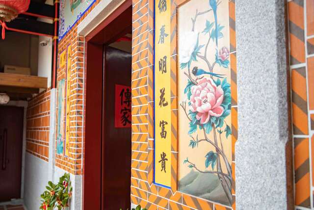 厅堂入口的精美彩绘,是老板专程邀请知名彩绘师来金门绘制,近看右侧牡丹、左侧金鱼可感受到立体感!十分漂亮且有趣!期待你来亲眼看看~