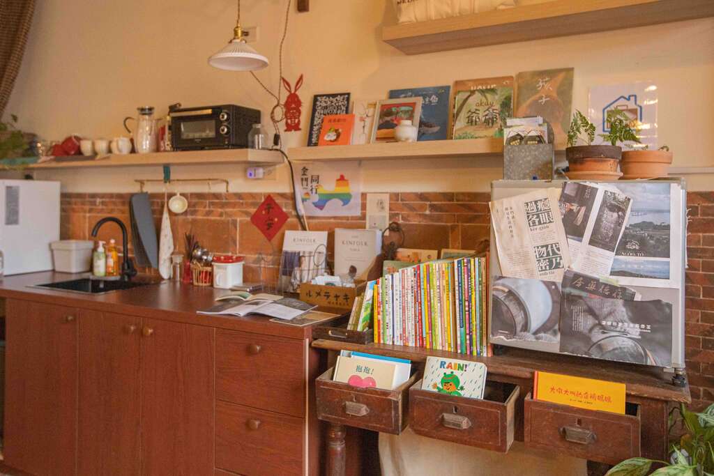 民宿品牌以绘本图书为主,因此在民宿内许多角落,都可以看到民宿主人精选的绘本。