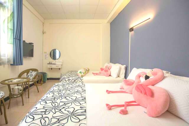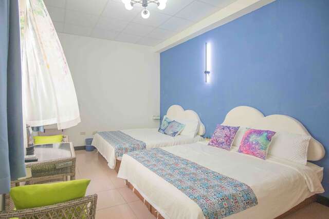 「家庭房」 喜爱花草元素的老板娘,精心打造每间客房,换上热带风窗帘、摆了俏皮的抱枕,让人很是喜欢。从窗外照进的自然光,顿时让房内充满轻松氛围,一早能被阳光唤醒,开启美好的一天好幸福!