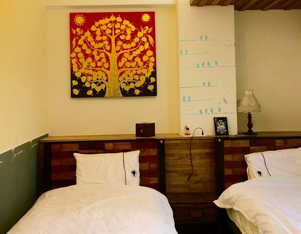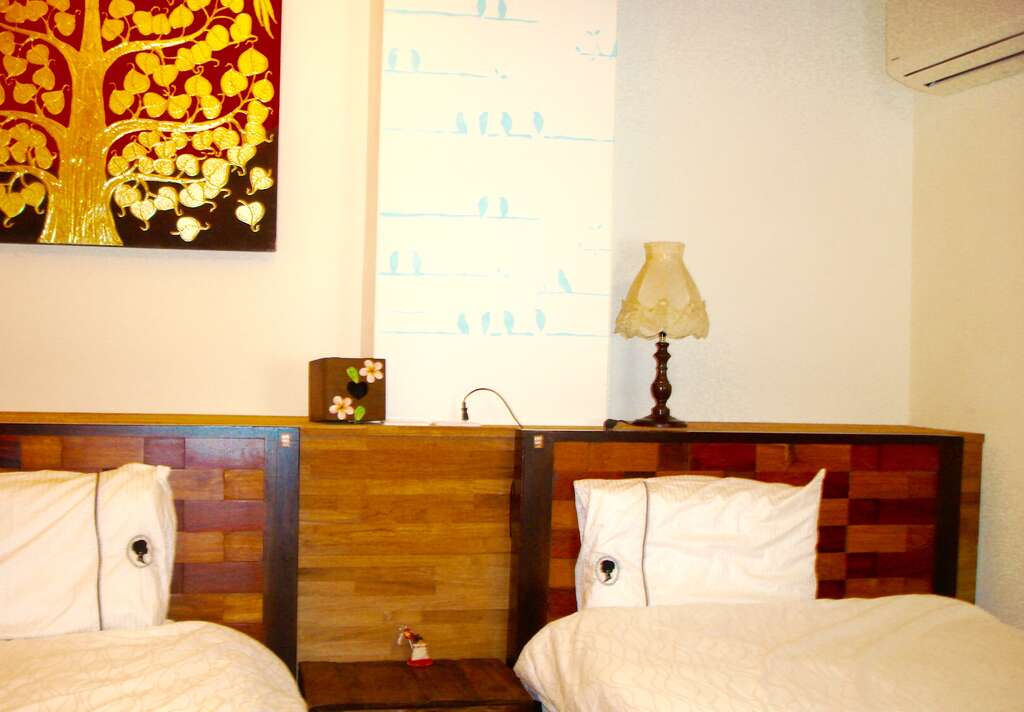 1、旅行Ing豪华双床房:两人标准床(110公分 X 200公分 )*2张单人床/8坪