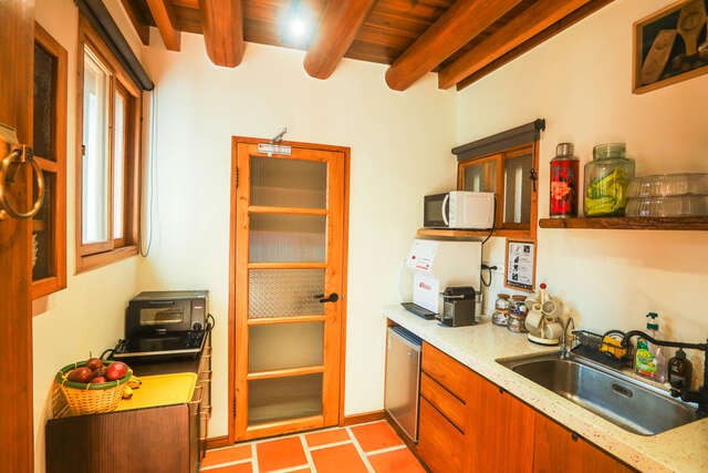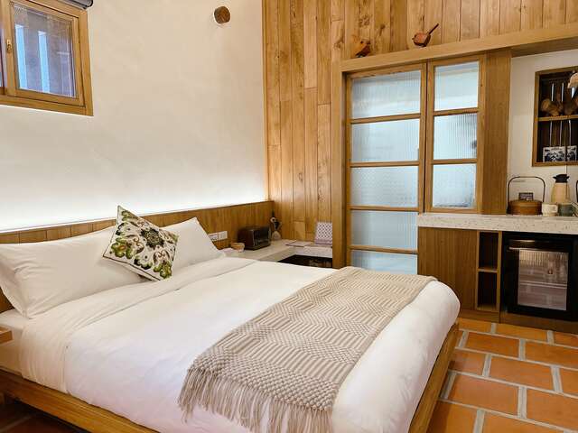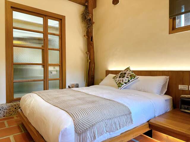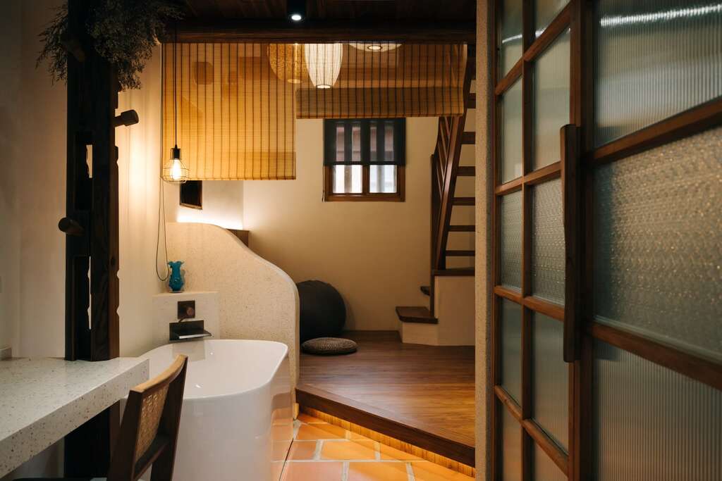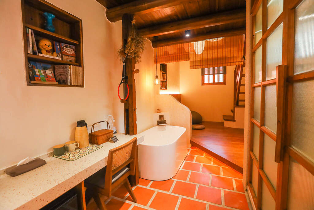 位在厅旁的房间,卸下一身疲惫,将身体沐浴在古厝空间中;独立的浴缸是穿梭的旅程,透过它感受新旧空间中交织的故事。