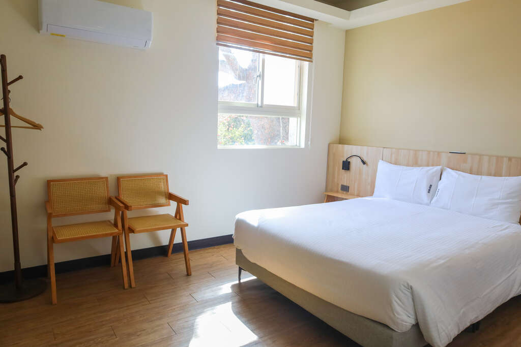 设计讲究简约与环保,从无接触入住系统,到电视、蓝光杀菌设备、RO冷热饮水、高速热泵供水,无不体现一种「轻旅」的理念,在房间内还能看见充满金门特色的小物「茄芷袋」。