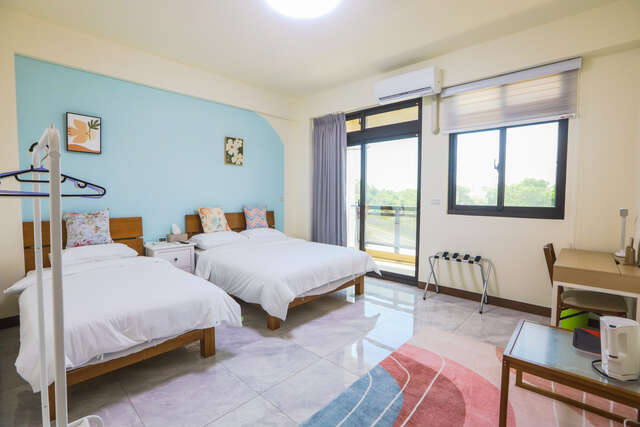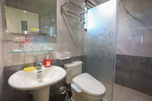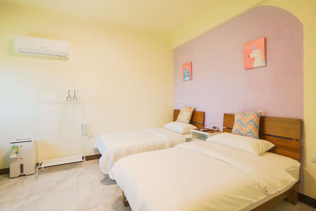 配有专属卫浴,房间配色温暖柔和,搭配些许童趣小物,营造出清新又自在的氛围,特别适合闺蜜、亲子共住。