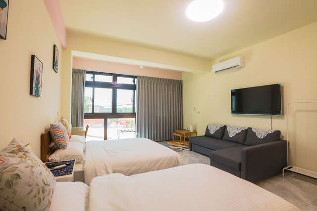 采光良好、空间宽敞,设有大片落地窗迎接自然光,沙发床可弹性加睡 2 人,满足小家庭或好友出游的弹性需求。