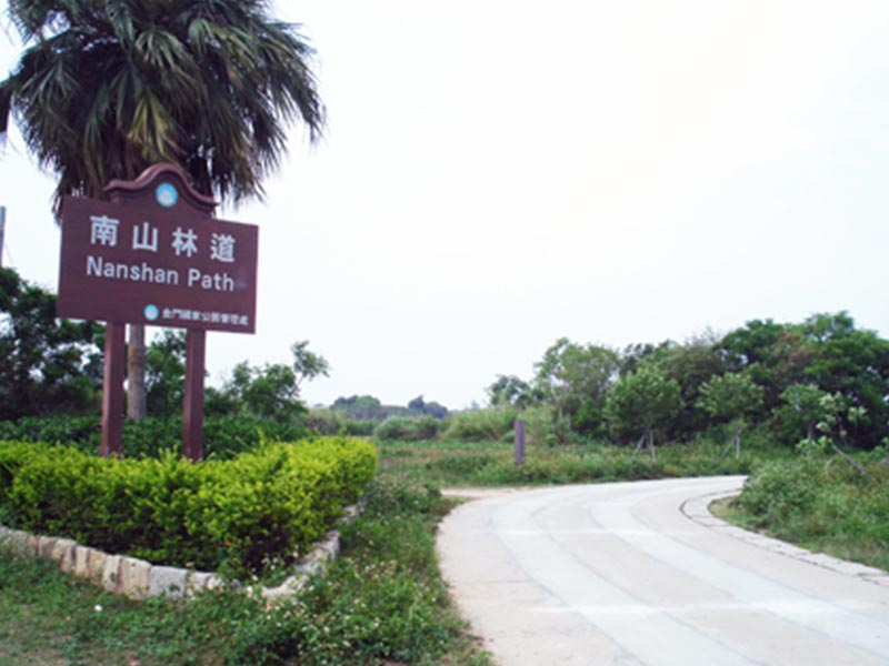 南山林道原本是一条农用的便道,但因林道两侧林荫夹道,放眼望去尽是开阔的耕地,种满高粱、小麦,收成时果实累累,一片金黄,在黄昏夕阳映照下煞是美丽。