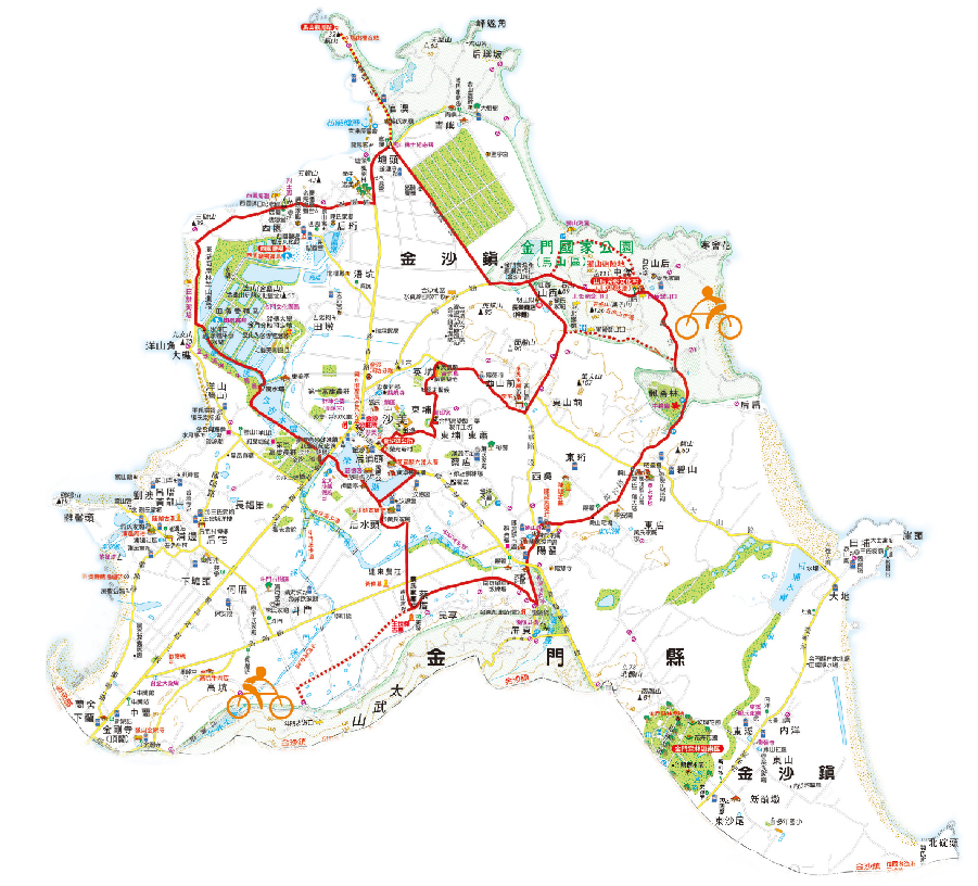 沙美车站 → 后水头 → 阳翟 → 陈祯恩荣坊 → 碧山 → 枫香林 → 山后民俗文化村 → 狮山炮阵地 → 山西 → 西山前 → 沙美车站