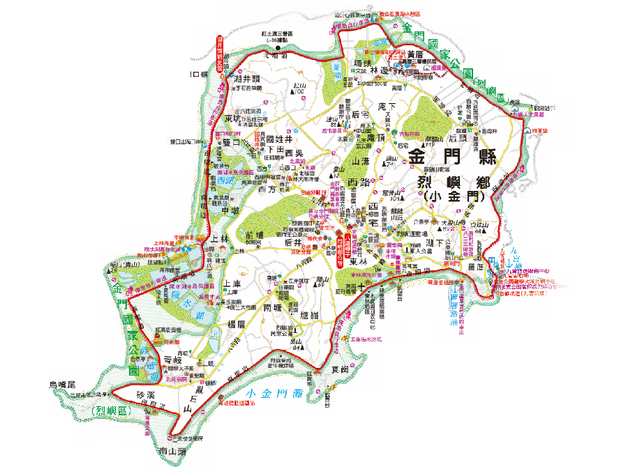 将环岛保存仍十分完整的车辙道整合规划而成,全长18.5公里,风光以小金门环岛海景与战役工事为特色。从九宫码头出发,逆时钟方向绕经将军堡、铁汉堡、勇士堡、猫公石滨海休憩区、湖井头战史馆、陵水湖赏鸟区、东林海滨等景点,沿途绿荫夹道,犹如一条绿色隧道,骑乘起来十分舒适惬意。