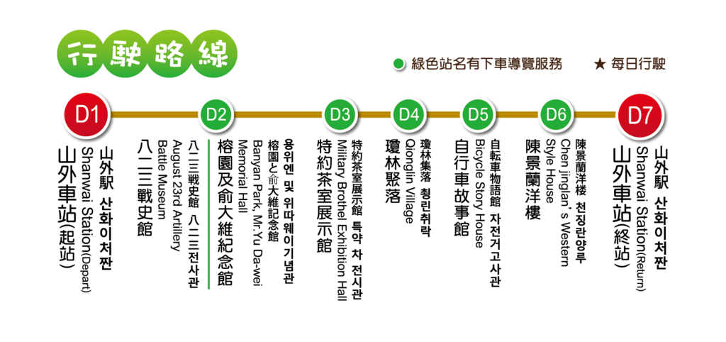 【台湾好行】D线-榕园太湖线,带旅客欣赏金门美丽的太湖景致,在太湖旁有机会看到野生水獭足迹!参观御赐里名的琼林聚落,在蔡氏家庙感染科举之家的书香气息;再参观金门规模最大、最壮观的陈景兰洋楼,丰富金门午後行程!