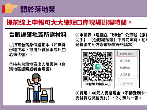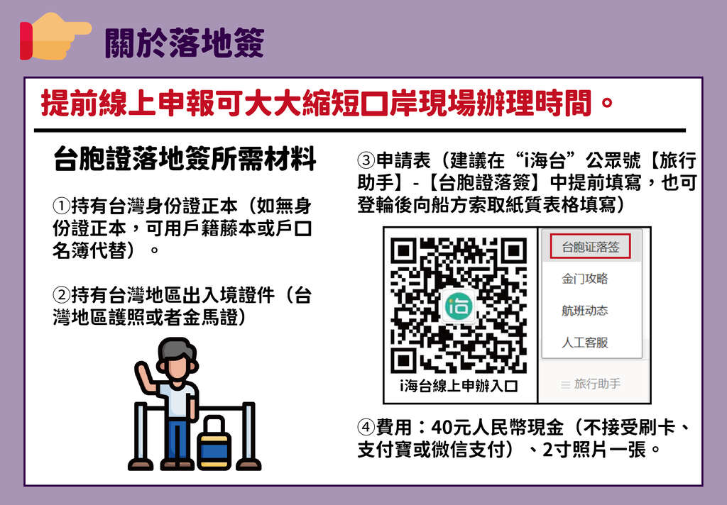 **自2025年6月1日起凡透过票务平台「i海台」购买金门厦门及泉州航线船票,码头旅客服务费将由i海台线上付费并入票价计费,售票柜台不再收取现金!