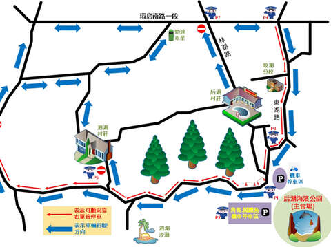 (三)参加活动民众机车停放於后湖海滨公园旁停车场(依主办单位规划位置停车)。