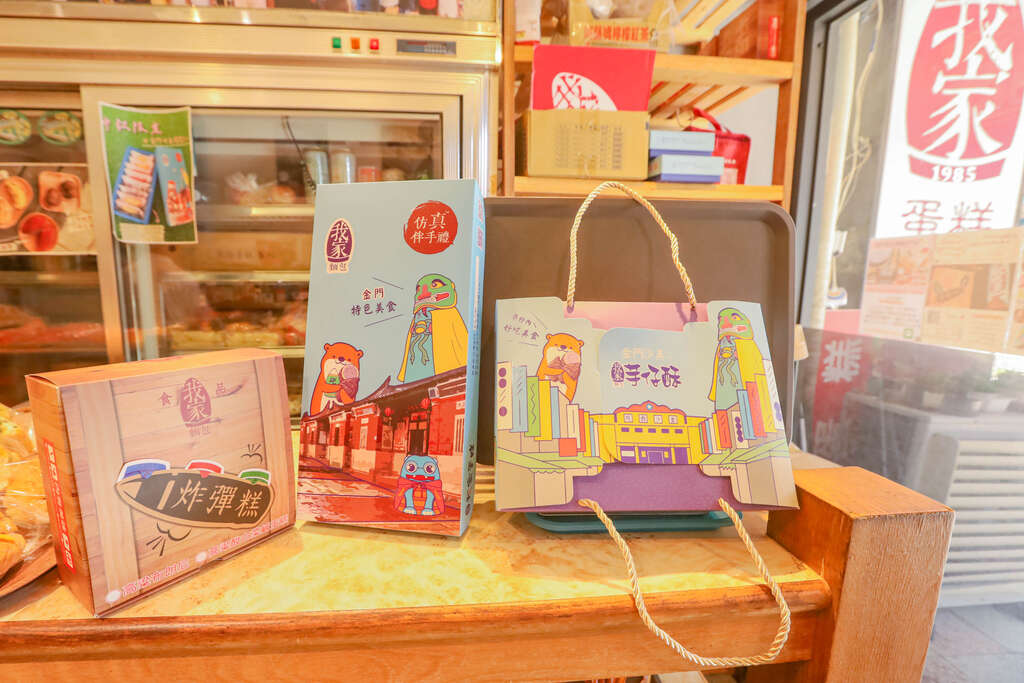 除了不断研发新的特色商品,我家蛋糕的店面与包装也随之创新。我们以金沙戏院、水獭和风狮爷为灵感,打造出专属於我家蛋糕的可爱风格,让包装不仅现代化,还充满金门的地方特色。这些改变让店面变得更加温馨,为顾客营造出一个亲切而舒适的环境。
