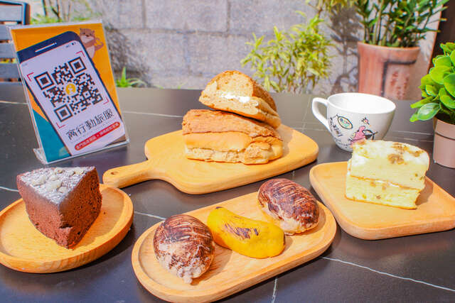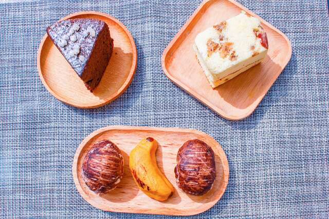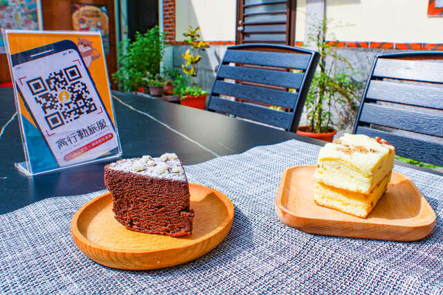 「高粱布朗尼蛋糕」巧妙结合金门的农业特产,采用进口巧克力和金门高粱酒,再加上奶油制作而成,蛋糕表层点缀着道地的高粱粒,口感扎实绵密,浓郁的巧克力香气层次分明,令人难以忘怀。而「高粱酸白菜咸蛋糕」则是本店独创的绝妙滋味,以金门特产的高粱酒糟酸白菜为主要配料,搭配燻香的培根,创造出甜咸交织、绵密爽口的独特口感,让人一口接一口!
