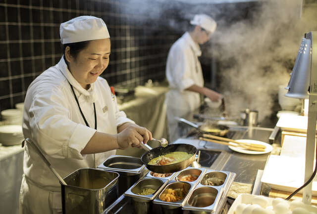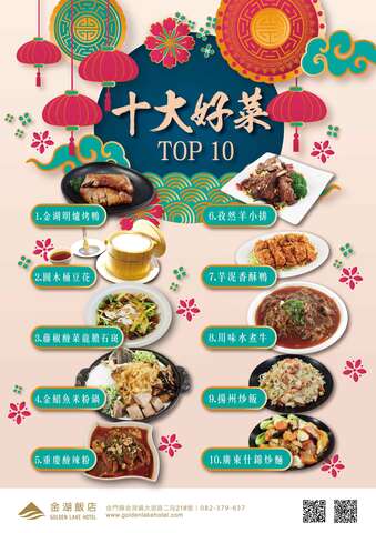 湖光餐厅:提供中西式餐点与金门特色料理,如高粱樱桃烤鸭三吃、原木桶豆花等,另有豪华早/晚自助餐吃到饱。