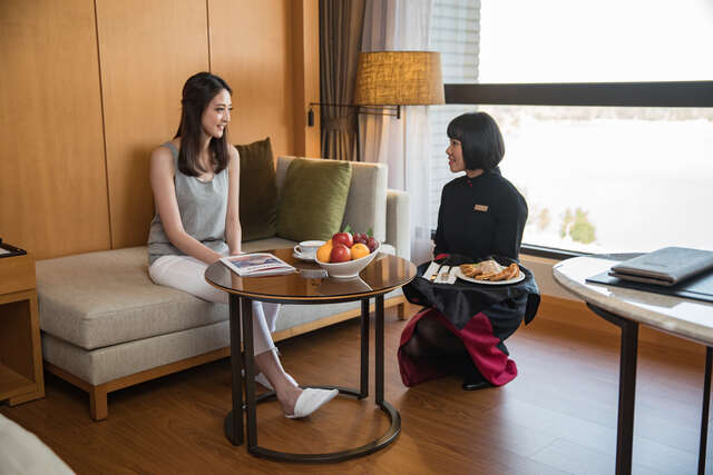 12楼行政酒廊「CLUB LOUNGE」,采大面积玻璃窗,能够欣赏群鸟、日出与日落之令人叹赏的太湖美景,提供香槟、红白酒、威士忌、轻食及甜点等,时尚又舒适的空间是洽谈公事、好友谈心的首选之地。