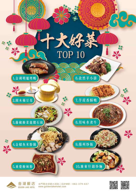 金湖饭店提供多元餐饮服务,包含湖光餐厅的中西式料理与金门特色佳肴、自助餐、行政酒廊品酒赏景、点心坊的现烤甜点等。馆内设施完善,提供免费Wi-Fi、亲子友善设施与空中花园,适合商务洽谈与亲子旅游。另设购物平台与住宿资讯服务。