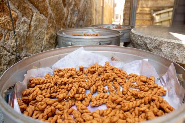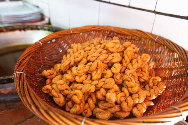 金门古宁头的国宾食品店是经营40多年的人气伴手礼老店,以手工麻花卷闻名,招牌蒜味香酥不腻,还有原味、香葱、海苔、花生等多种口味,深受在地人推荐。另贩售寸枣糖(类沙琪玛)与一口酥(似桃酥),皆保有怀旧风味与独特口感,无防腐剂、每日限量,适合健康安心享用。