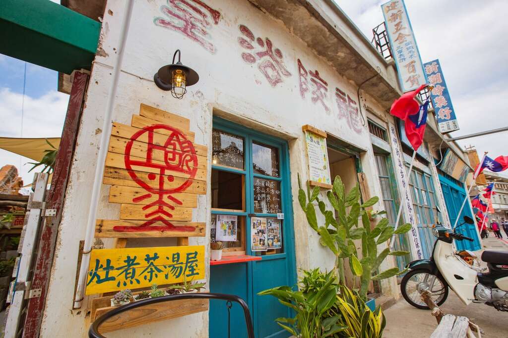 墨上饮灶煮茶汤屋位於金门阳翟老街,前身为龙陵浴室,保留原貌转型为灶煮茶饮专门店。主厨融合中西茶饮技艺,强调天然、无添加,采金门深井泉水制作,推出多款特色饮品如「金门雾」、「灶拿啵啵馒头」,并提供预订与外送服务。店内环境疗癒,结合在地创生,成为旅客放松与享茶的好去处。