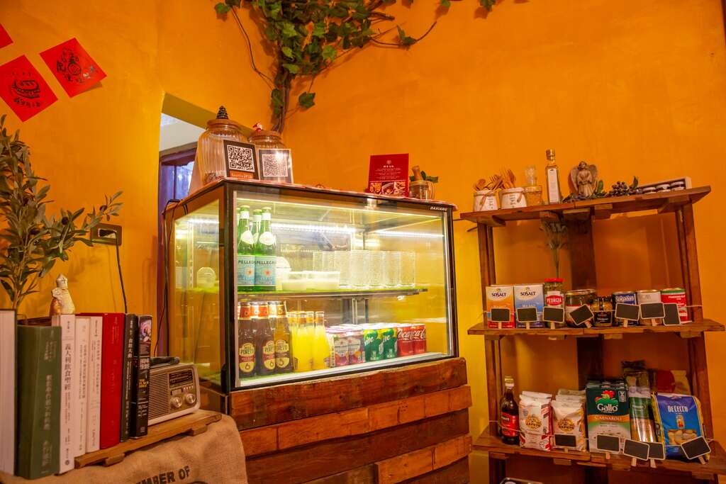 温馨的小店充满浓厚的义式风情,冰箱里的饮料都是可以选购的喔