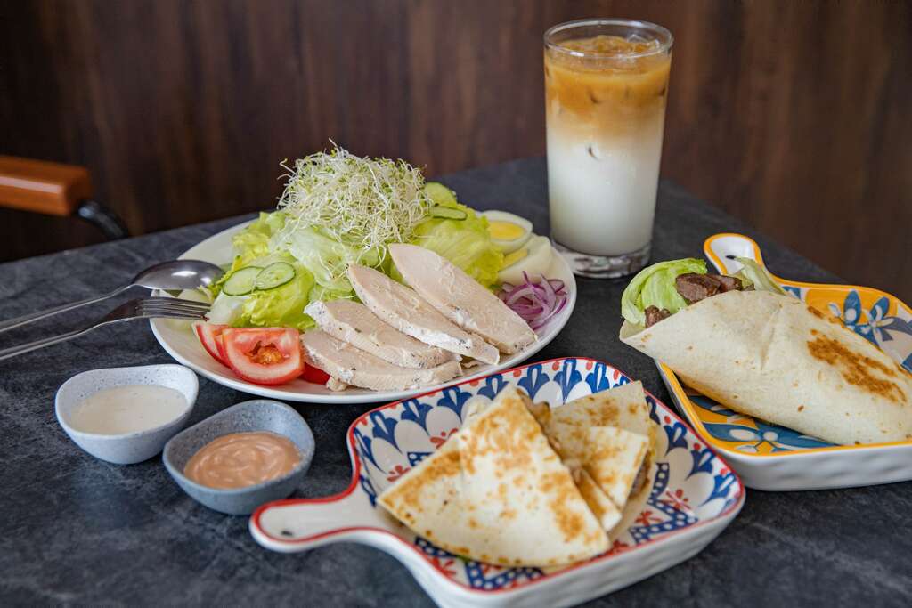 「墨西哥烤饼」火烤後的面皮香扑鼻而来,一口咬下内馅,鲜蔬跟烤肉的多层次口感很好吃!主打轻爽口味的餐点,吃完整份很有饱足感却不会觉得负担。