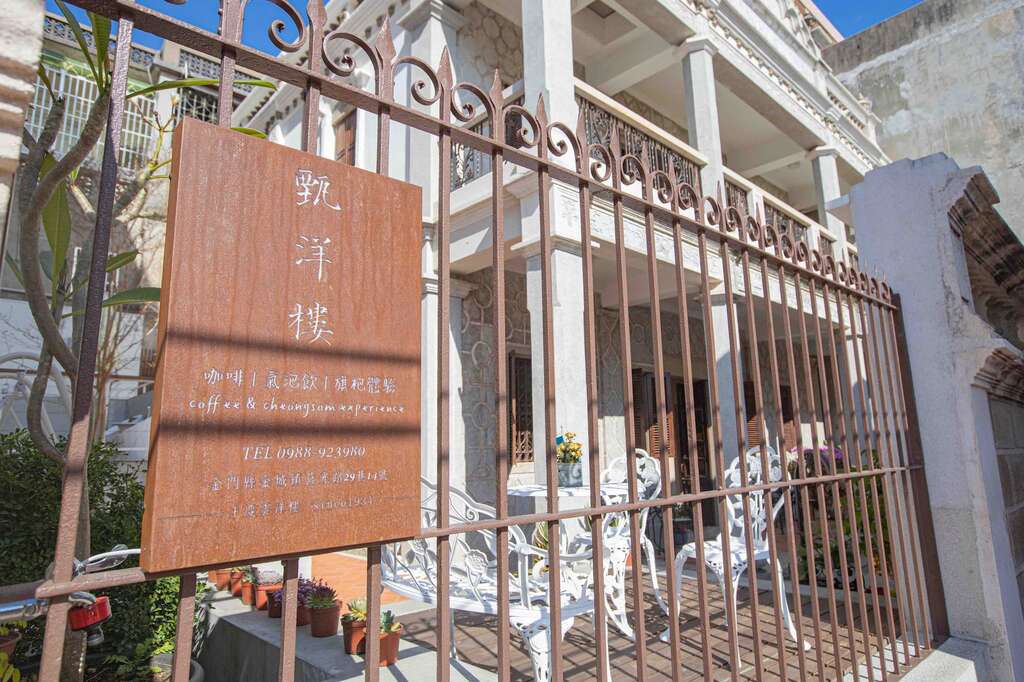 金门後浦老街的「甄洋楼」是90年历史的古洋楼,结合旗袍租借与沉浸式旅游体验,提供超过2000件服饰选择,含旗袍、汉服、唐装等,并设有专业拍照场景与配件服务。一楼为咖啡与下午茶空间,另有室内外座位与华丽包厢,适合多人聚会。游客可穿梭於洋楼与老街之间,展开独特穿越时光之旅。